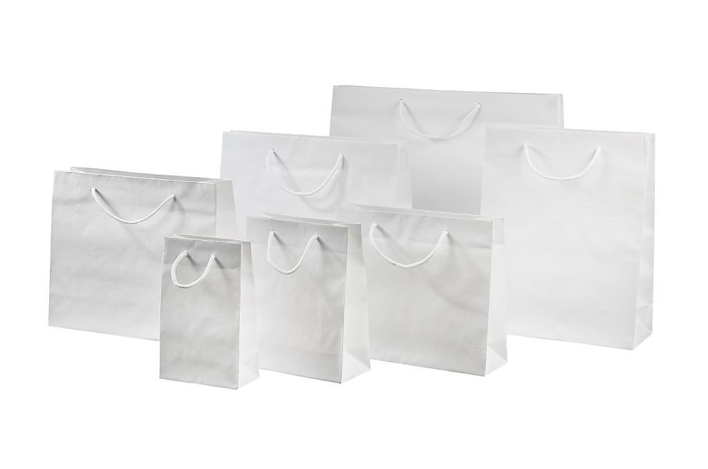 White handmade kraft paper bags All white kraft paper bags are made by hand The bottoms of the white kraft paper bags are reinforced with cardboard and it is also used for strengthening the handles White paper bags are made of 120 gsm coated kraft paper. Kraft paper creates the necessary strength for the bag.