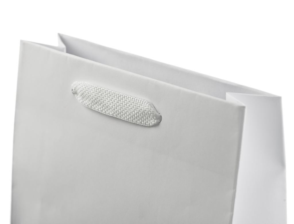 Handles of the bags are made of cotton woven ribbon. N.B. We offer the possibility of printing logos on all bags. The minimum quantity for printed bags starts from one box.