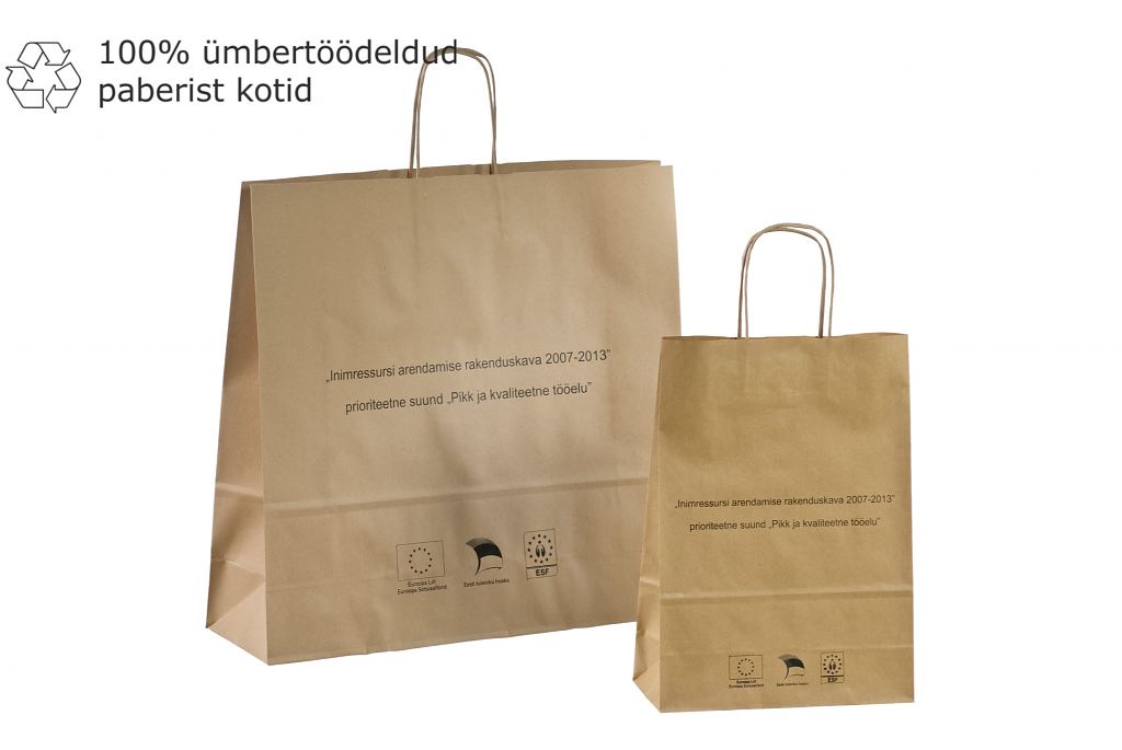 trükiga nöörsangadega ökopaberist kotid